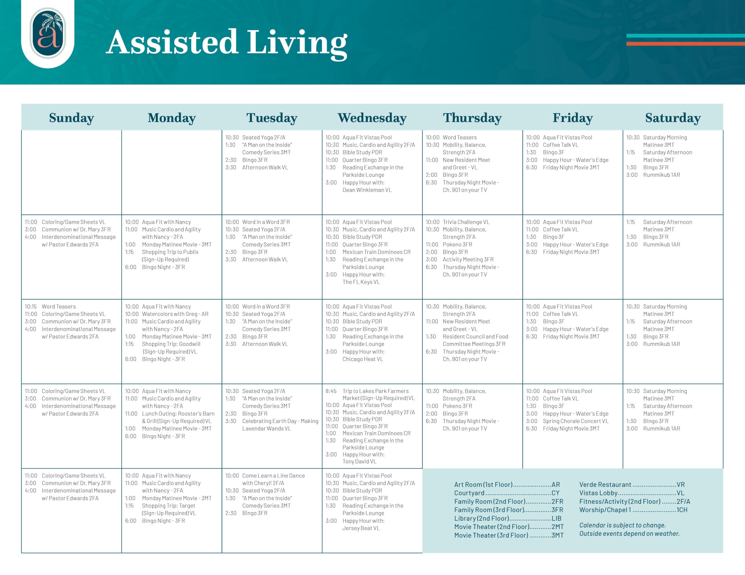 Our Assisted Living amenities include: